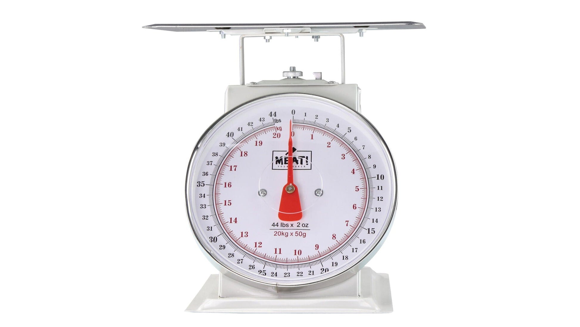 This analog measurement scale can handle up to 44 lbs of your meats, all on a stainless steel platform. How much meat is too much? The limit does not exist. (Well, except for this scale, which holds up to 44 lbs).
